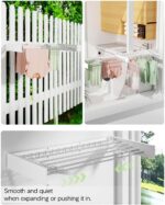 • 【Space Saving Clothes Drying Rack】Very easy to extend and retract of this wall mounted drying racks for laundry.Smooth and quiet when expanding or pushing it in.This clothes drying rack wall mounted folds neatly against the wall when not in use, freeing up the floor space and you will forget it is there. Air dry in a small space and keep your floor space uncluttered and unobstructed.