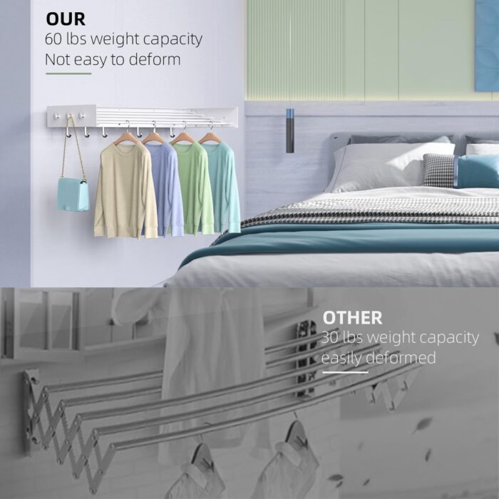 This is working great for me! Sturdy, foldable, and it comes with a drill template which is true to size for install. Overall, I’m really happy with this purchase. It’s a convenient, space-saving, and practical solution for our laundry needs.